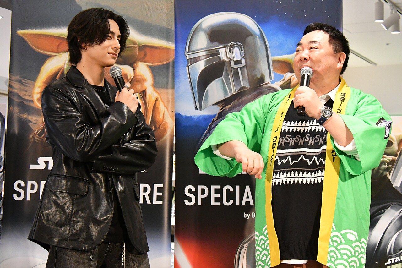 この度、『スター・ウォーズ/マンダロリアン・アンド・グローグー』公開を記念して筋金入りのSWファンとして知られるINI・西洸人さんとドランクドラゴン・塚地武雅さんが駆け付けトークイベントを開催。期間限定ストア「STAR WARS SPECIAL STORE by BENELIC」(3/23(月)〜8/16(日)池袋PARCOにて開催)のオープン初日が月曜日であることにちなみ《MANDO MONDAYS(マンドーマンデー)》と題したこのポップアップイベントでは、マンダロリアン&グローグーのグッズをいち早く手に入れるべく集結した熱いファンと共に、オープン初日を盛大に祝福されました。